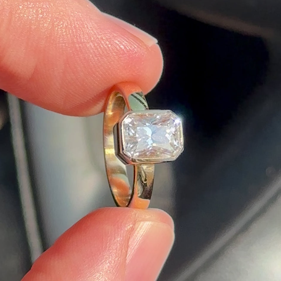 Moissanite Bezel Ring 14k Gold Hallmarked - Details