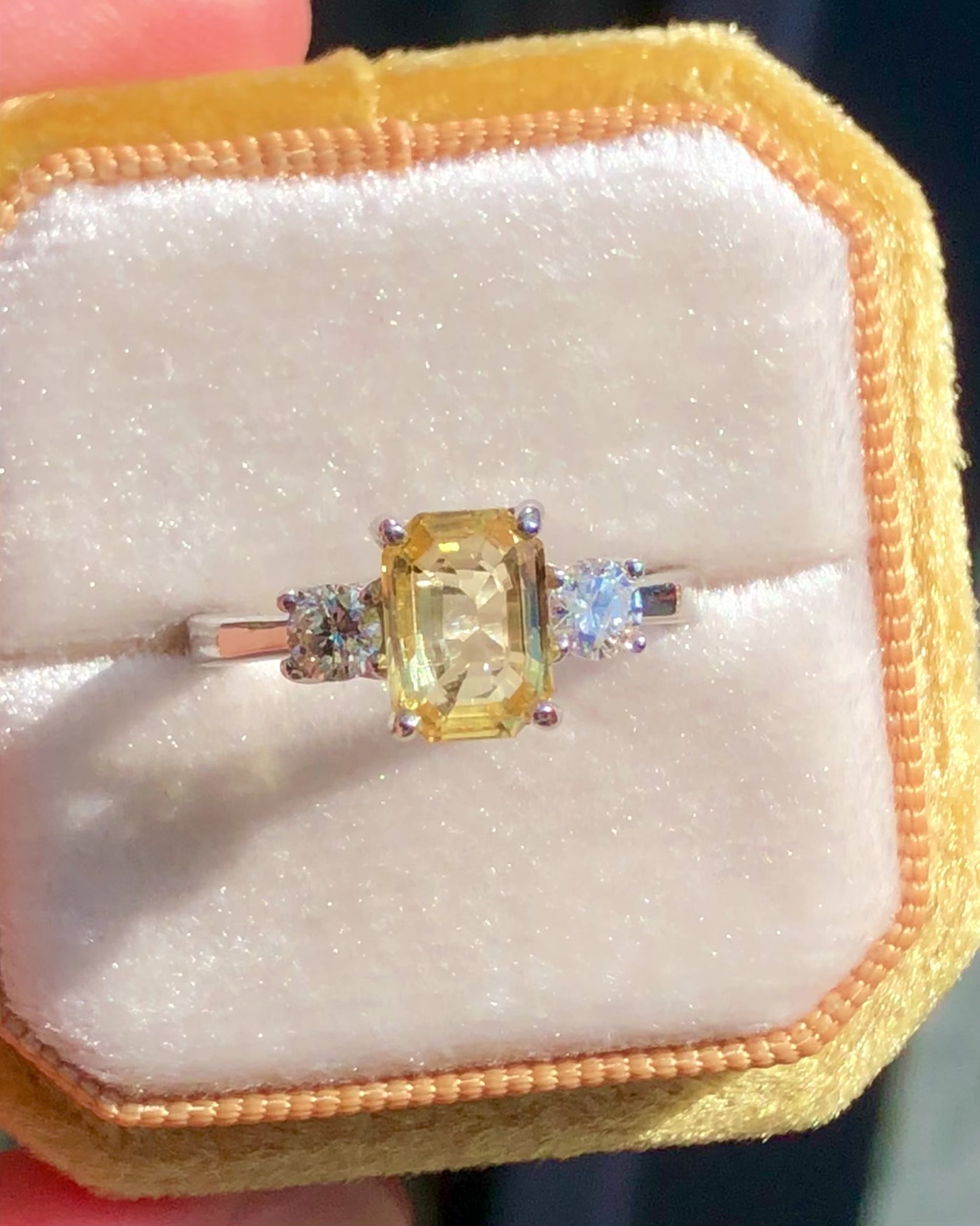 The beautiful unheated Ceylon yellow sapphire is the show's star, while the diamonds provide plenty of sparkle. Whether you're looking for an alternative to a traditional engagement ring or want something special and unique, this ring is sure to please.